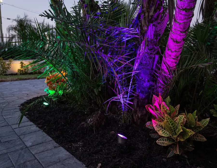 Focus on highlighting landscape features like palm trees, walkways, and architectural columns or accents. Consider the ambiance you want to create, whether it’s warm/soft, or a bit brighter for functionality and safety.